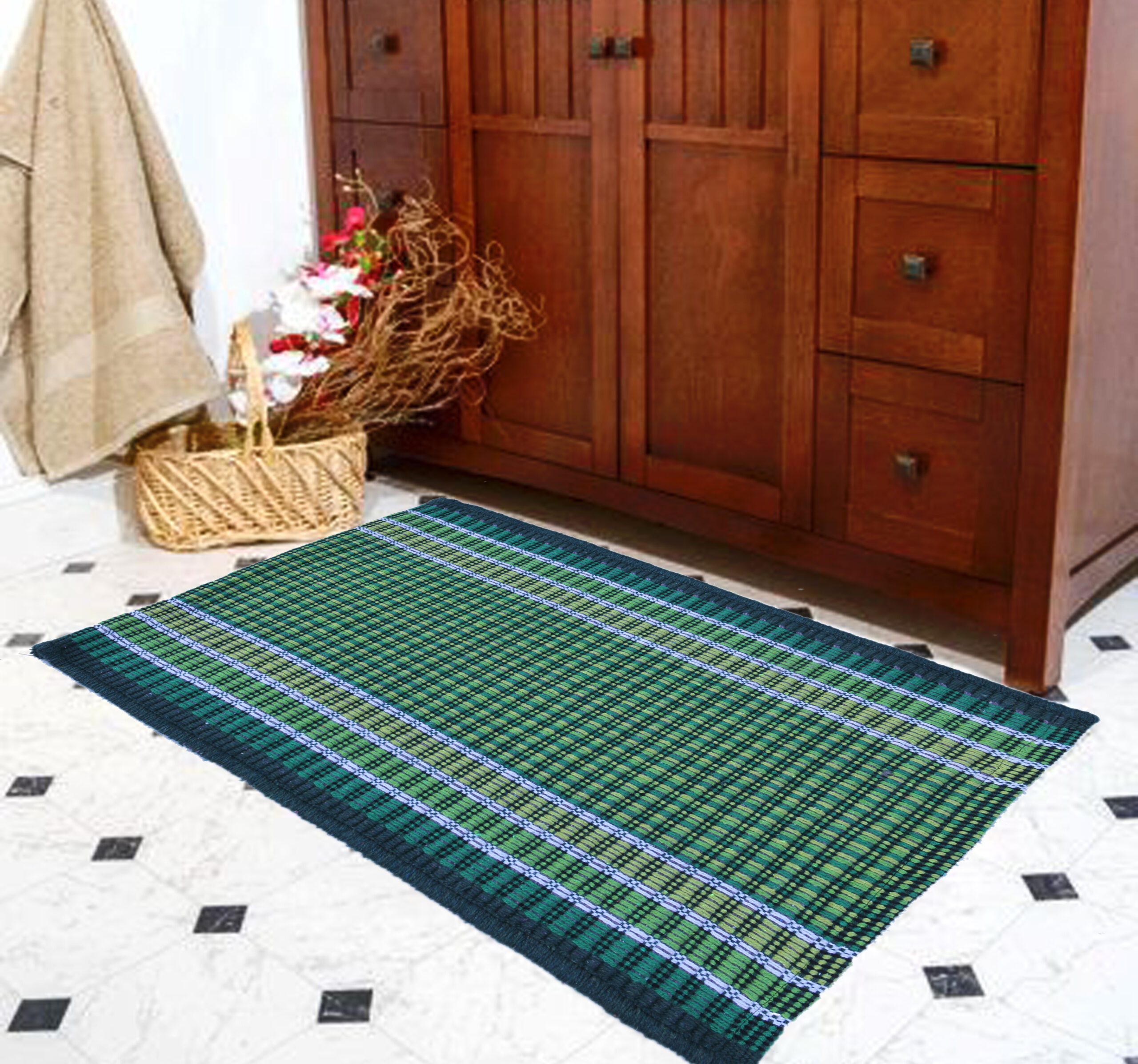 MACHINE WASHABLE: This Mat are designed to be machine washable to get stains out. Hang to dry or flat air dry. The Cotton yarn will not lose color and rather after wash the fabric will become more softer and as good as new one. to wear and peel off after a number of washes. For best results, wash on cold and lightly tumble dry on low heat